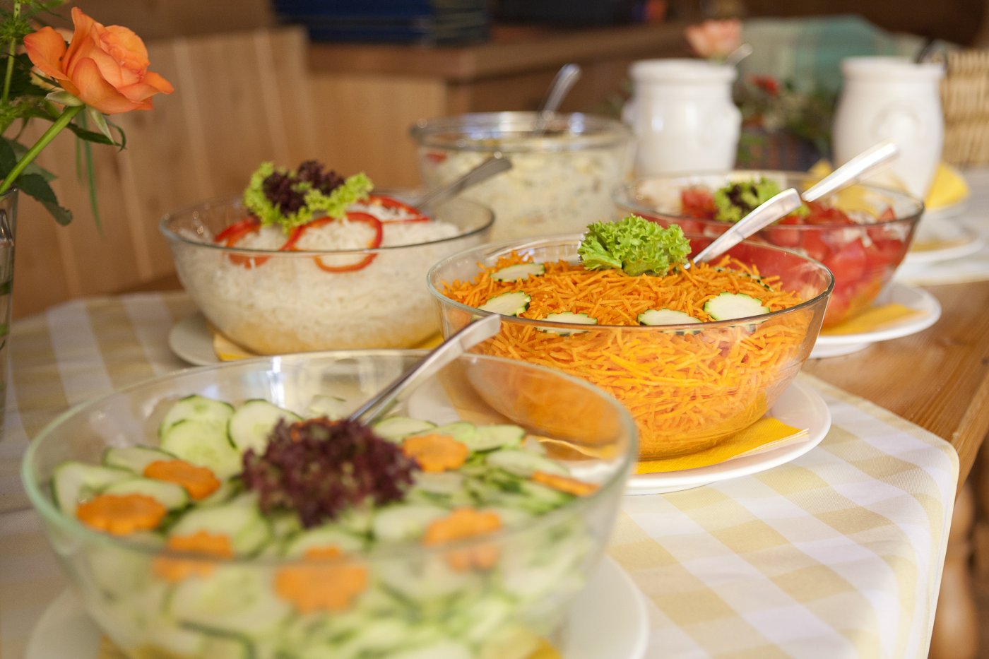 Täglich von 7.30 Uhr bis 10.00 Uhr erwartet Sie im Restaurant ein vitales und reichhaltiges Frühstücksbuffet, mit dem Sie frisch gestärkt in den Tag starten. Das Müsli liefert die optimale Energie für einen erlebnisreichen Tag am Berg und der Kaffee sorgt für den nötigen Schwung nach dem Aufstehen. Im Sommer können Sie auch wahlweise das Frühstück auf der Sonnenterrasse mit traumhaftem Blick in die Berge genießen.